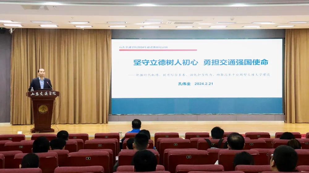 孔偉金為新進(jìn)教師作了題為《堅(jiān)守立德樹(shù)人初心 勇?lián)煌◤?qiáng)國(guó)使命》的“校長(zhǎng)第一課”。他立足國(guó)家教育強(qiáng)國(guó)和交通強(qiáng)國(guó)建設(shè)戰(zhàn)略交匯的歷史機(jī)遇期,聚焦“科技革命和產(chǎn)業(yè)變革的迅猛發(fā)展”“時(shí)代變革與大學(xué)使命”“學(xué)校發(fā)展的八大比較優(yōu)勢(shì)”,系統(tǒng)分析了學(xué)校在全國(guó)和山東省高校的方位,闡釋了建成高峰凸顯、名師薈萃、學(xué)子向往、人才輩出、有重要影響力的交通大學(xué)的關(guān)鍵時(shí)間節(jié)點(diǎn)。