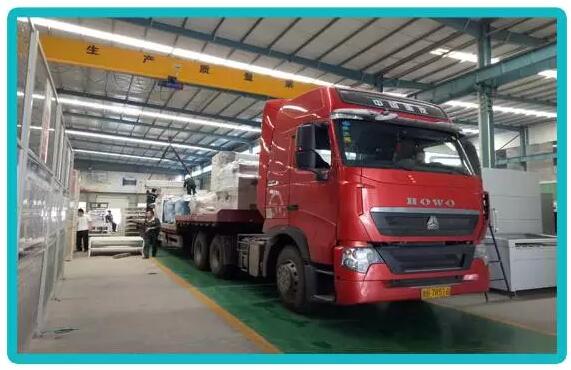 2017年5月20日-21日,在各生產部門的緊密配合下,天意機械為威海客戶加工生產的裝飾及保溫一體化板生產線已全部生產調試完畢,且成功裝車啟運!