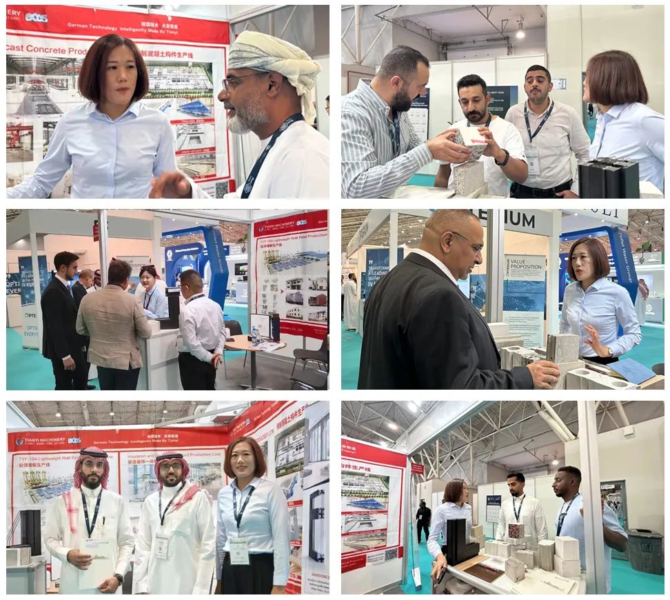2023年沙特建筑建材及基礎(chǔ)設(shè)施展于9月11日在利雅得前沿展覽中心盛大舉辦,來自沙特阿拉伯、中國(guó)、德國(guó)、意大利、新加坡等國(guó)家的200多家公司參展,天意機(jī)械攜裝配式建筑裝備(墻板裝備、PC裝備、ALC裝備、涂裝板裝備)系列產(chǎn)品亮相展會(huì)。