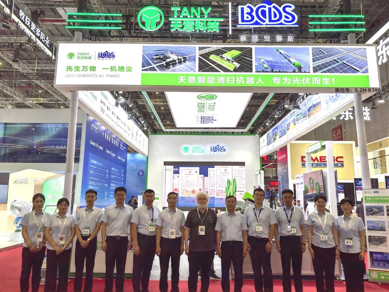 在SNEC PV+ 2025這一光伏行業(yè)的盛會上,天意科技全方位展示了其針對大型地面電站、分布式廠房屋頂、農(nóng)光互補等多種應(yīng)用場景精心研發(fā)的智能光伏清潔機器人系列。這些機器人憑借其卓越的性能,成為了高效解決光伏電站清潔難題的優(yōu)選方案。