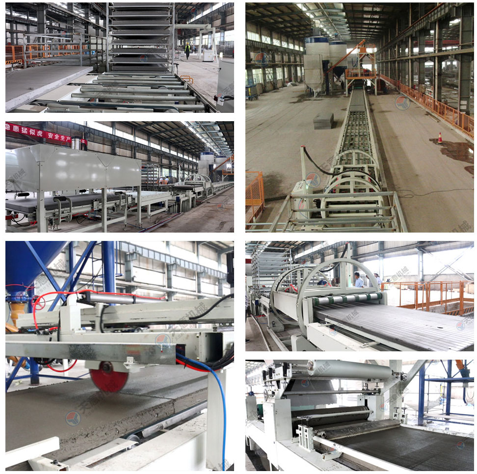 成型輸送線主要由上板輸送線、成型輸送線,加速整理輸送線及送板主機(jī)、布料主機(jī)、刮平裝置、玻纖網(wǎng)格布架等組成,主要功能是把漿料鋪設(shè)在EPS基板上并完成產(chǎn)品的成型,且輔助完成兩端雙工位碼垛機(jī)的上下架。